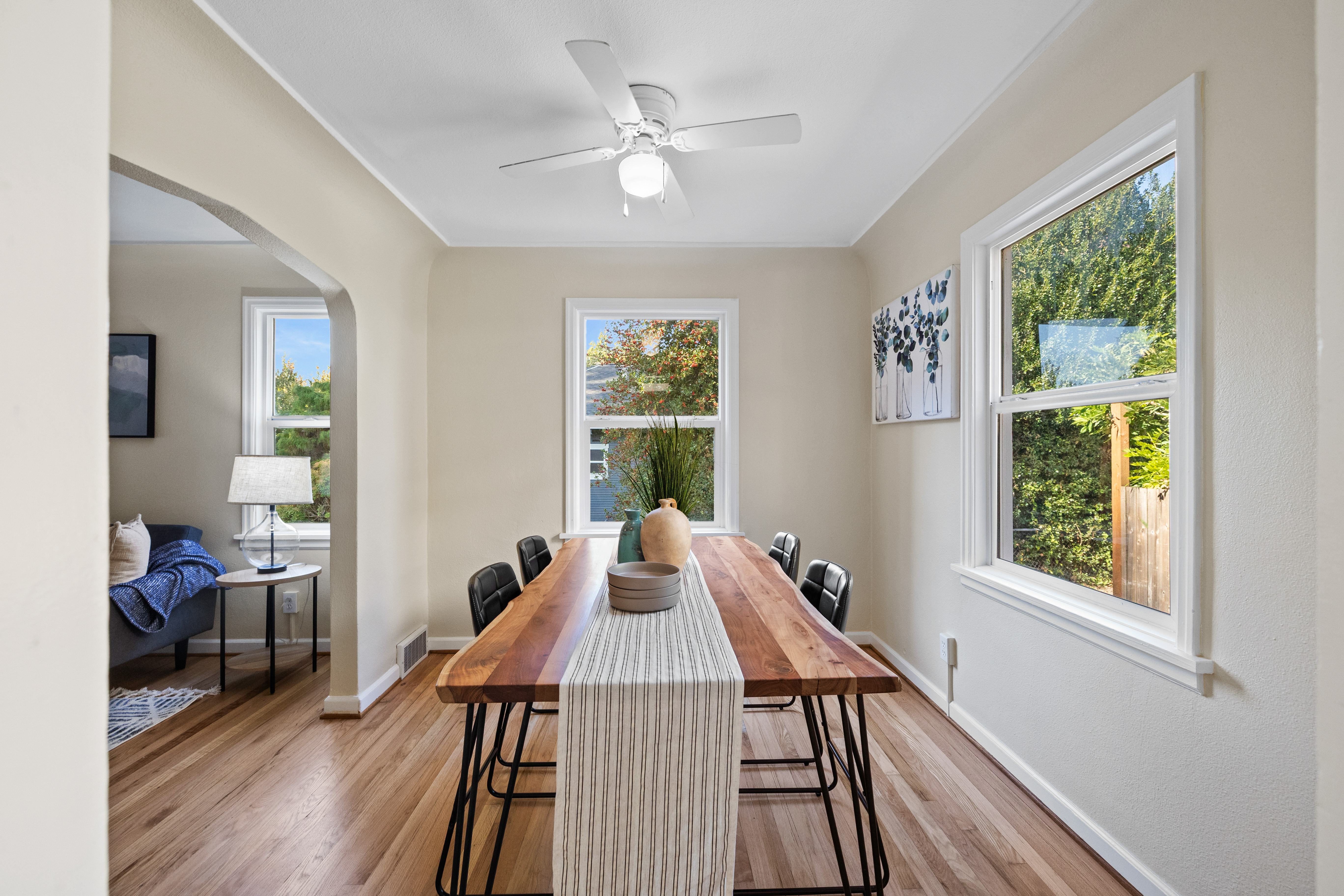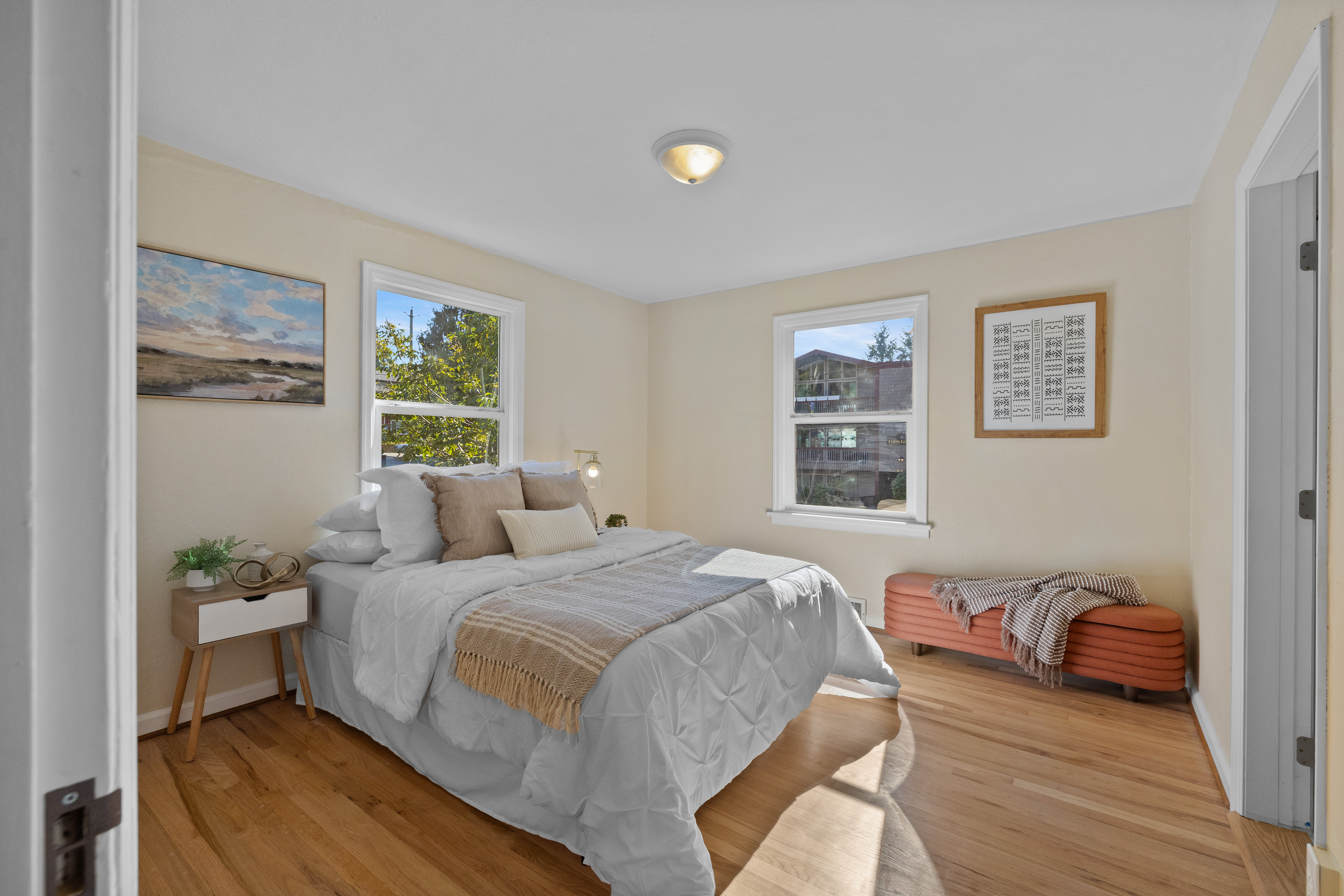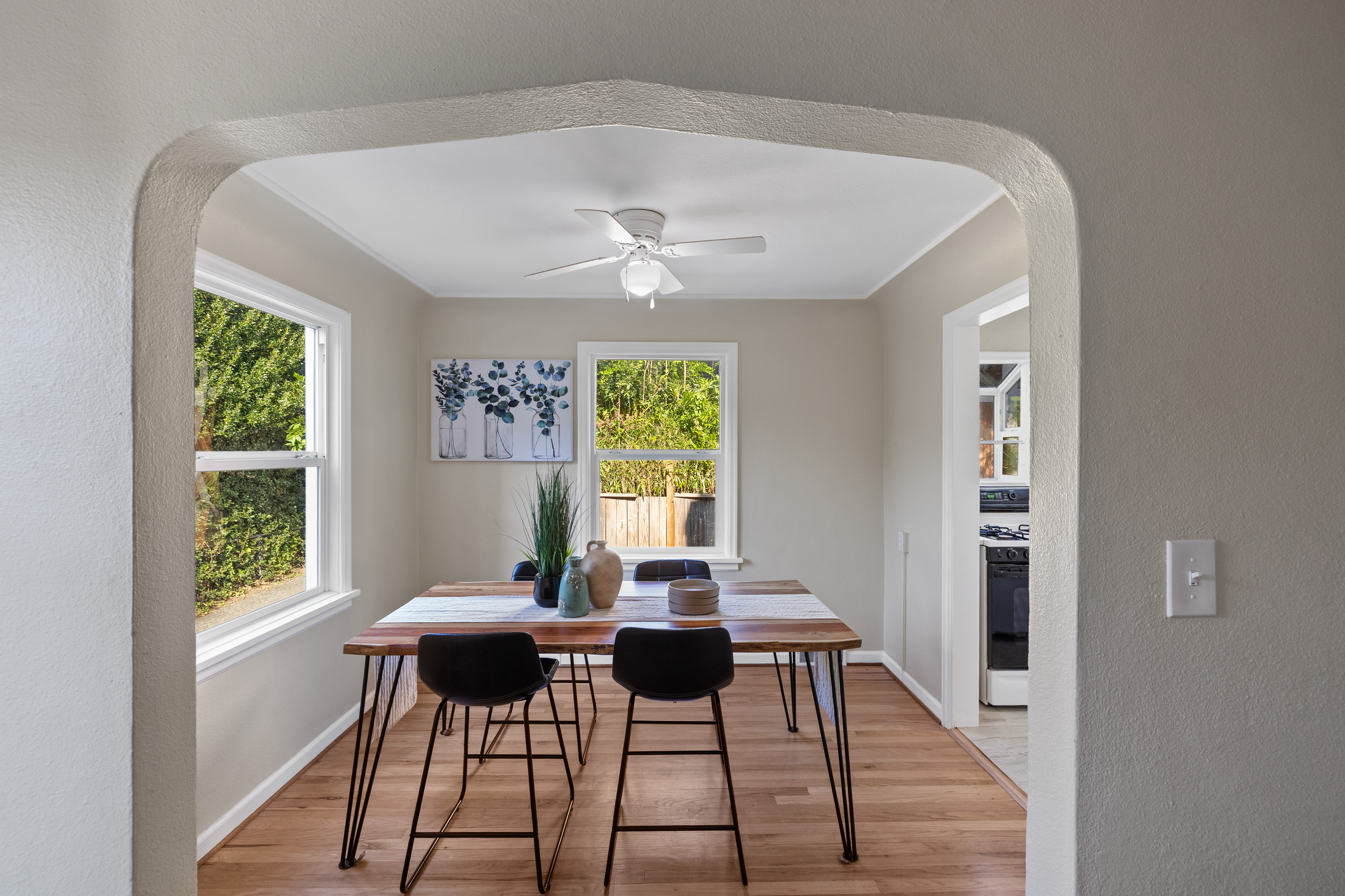 This beautifully refurbished Bothell gem is move-in ready, featuring a new roof, updated electrical, and gleaming refinished hardwood floors. The main-floor primary suite offers a private ¾ bath, while original door hardware, lap-and-plaster walls, and graceful coved ceilings showcase timeless charm. A versatile upstairs loft is perfect for a home office, creative space, or extra storage. The finished lower level includes a bedroom, office, and kitchenette—with its own exterior entrance for added flexibility. Enjoy summer BBQs on the covered stone porch or unwind in the side yard. Just ¼ mile to downtown Bothell and 1 mile to UW Bothell, this home pairs classic character with prime location.